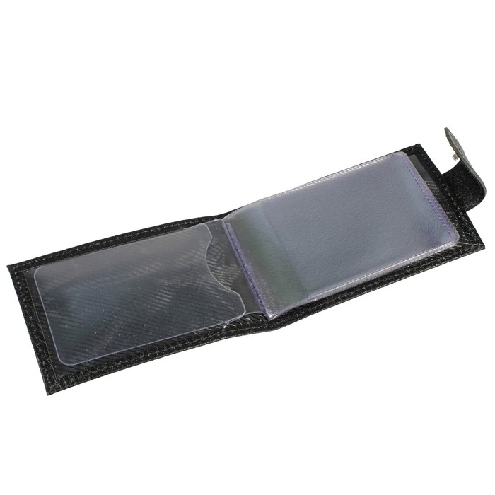 Визитница, кнопка, натуральная кожа, цвет чёрный крокодил