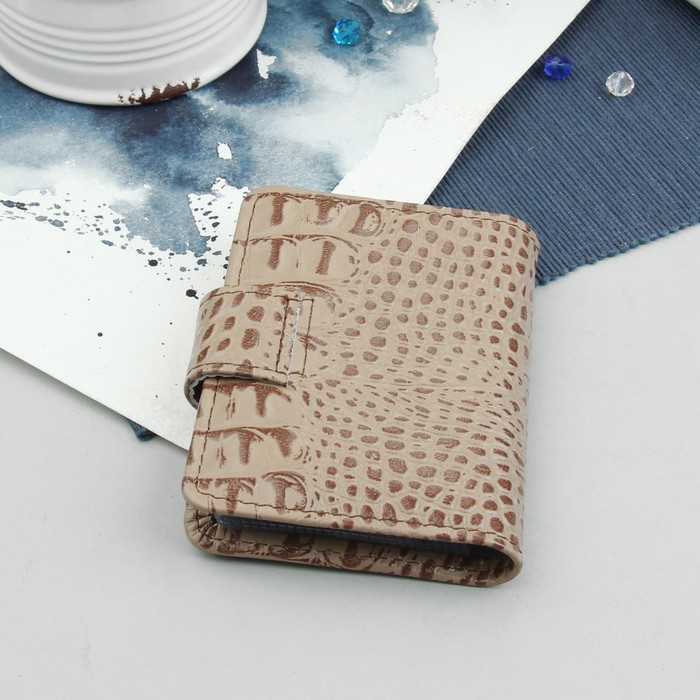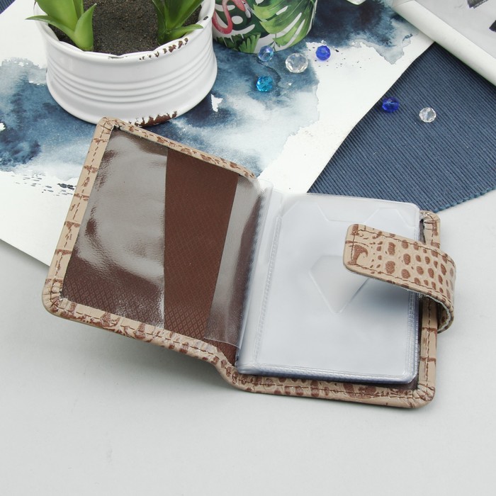 Визитница на кнопке, 1 ряд, 18 листов, кайман, цвет бежевый