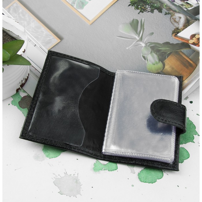 Визитница на кнопке, 1 ряд, цвет чёрный
