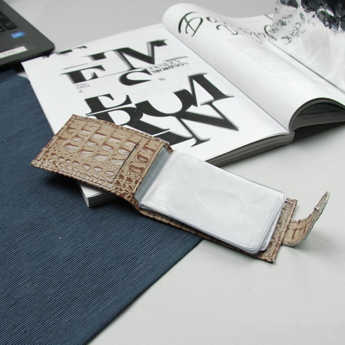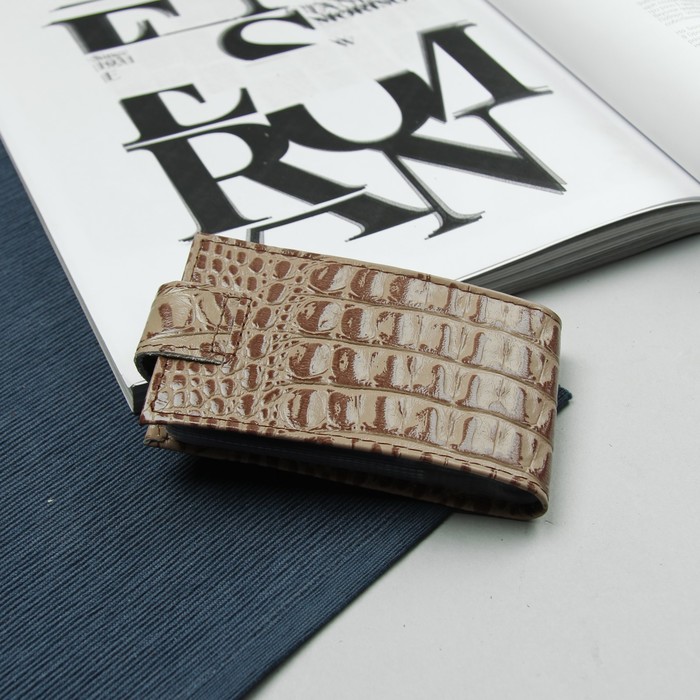 Визитница на кнопке, 1 ряд, кайман, цвет бежевый