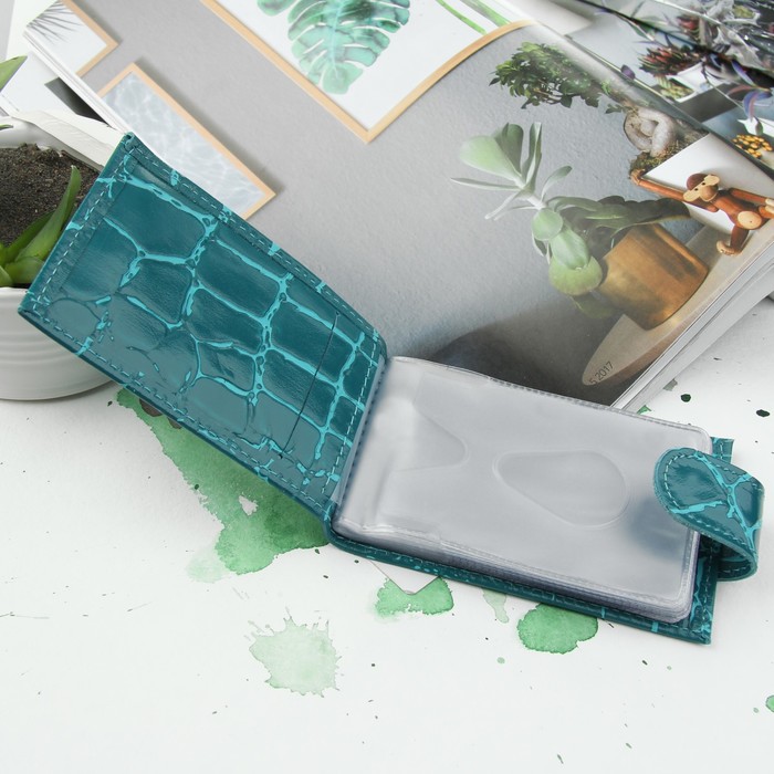Визитница на кнопке, 1 ряд, скат, цвет бирюзовый