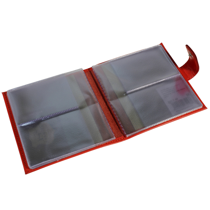 Визитница на кнопке 36/72, натуральная кожа, цвет красный