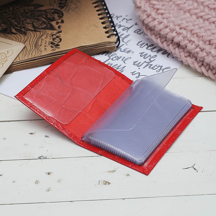 Визитница вертикальная, 1 ряд, 18 холдеров, крокодил, цвет красный