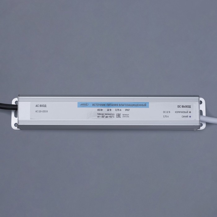 Влагозащищенный источник питания Luazon 12V DC, 3.75A, 45W, IP67, 110-220V AC