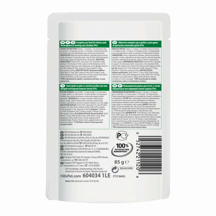 Влажный корм Hill's Cat для котят, курица кусочки в соусе, пауч, 85 г