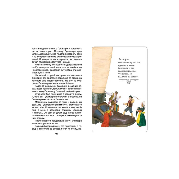 Отправляясь в дальнее плавание, корабельный врач Гулливер и не подозревал, какой головокружительный оборот примет его путешествие. В книгу вошел классический пересказ для детей сатирического романа английского писателя Джонатана Свифта (1667-1745) о невероятных приключениях Гулливера в фантастической стране Лилипутии и в стране великанов Бробдингнег.