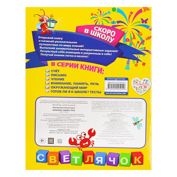 Внимание, память, речь. Автор: Макеева О.Н. — отличный вариант для тех родителей, которые привыкли окружать своего малыша только лучшими и качественными вещами. За такой книжкой ваш ребёнок проведёт время с пользой и удовольствием, узнает много нового и интересного.