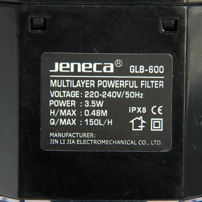 Внутренний фильтр с дождевальной флейтой Jeneca GLB-600 угловой, 3,5 Вт, 150 л/ч, высота подъема вод