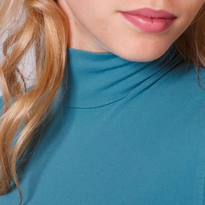 Эластичная водолазка с низким воротником и коротким рукавом из мягкой микрофибры без боковых швов.