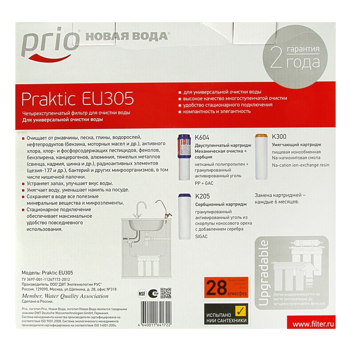 Водоочиститель Prio "Новая Вода" Praktic ЕU305, фильтр-система "под мойкой", с краном