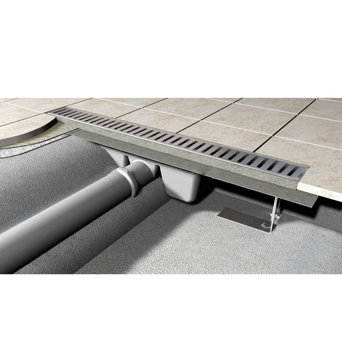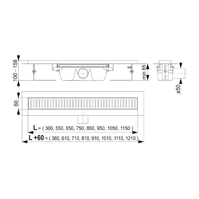 Водоотводящий желоб AlcaPlast, с порогами для перфорированной решётки, с горизонтальным стоком
