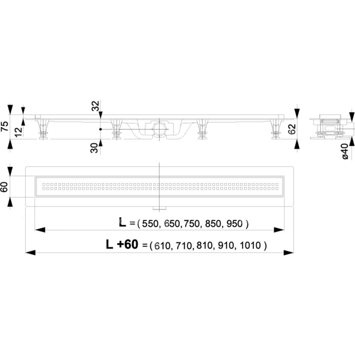 Водоотводящий желоб AlcaPlast Simple, с порогами для перфорированной решётки