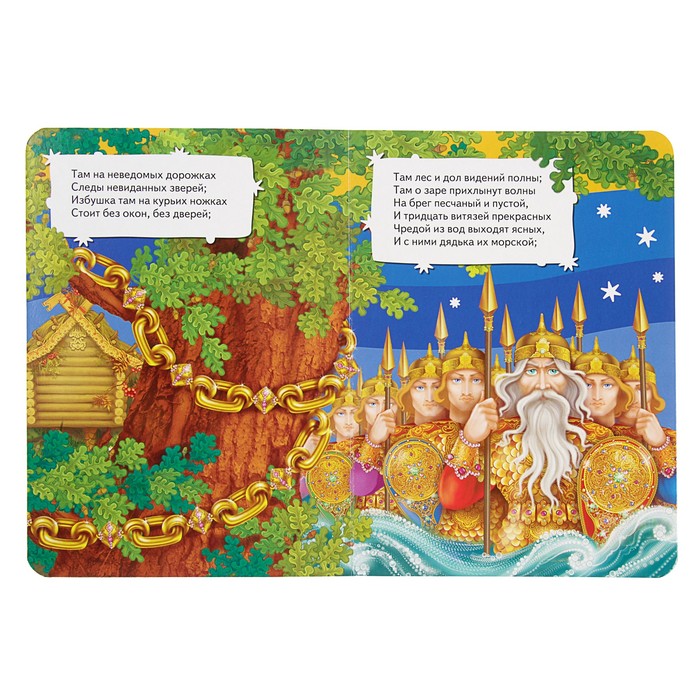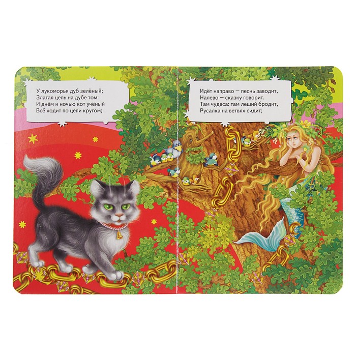 Вступление к поэме А.С. Пушкина «Руслан и Людмила», ставшее хрестоматийным детским стихотворением. Яркие иллюстрации познакомят малышей с лешим, русалкой, котом ученым и другими сказочными персонажами.