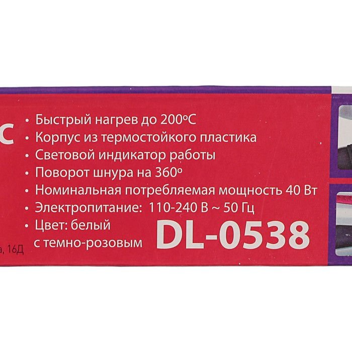 Выпрямитель DELTA DL-0538, 40 Вт, керамическое покрытие, бело-розовый