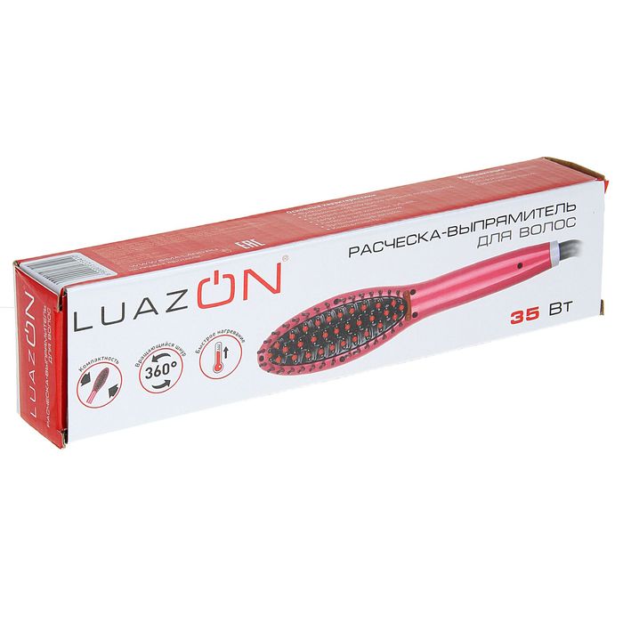 Прибор LuazON поможет быстро сделать гладкую укладку. Конструкция в виде массажной расчёски делает данную модель особенно удобной в использовании. Керамическое покрытие рабочей поверхности предотвращает потерю влаги от воздействия высоких температур. Оно делает локоны более эластичными и блестящими. Закруглённые кончики зубьев предохраняют волосы от повреждений.