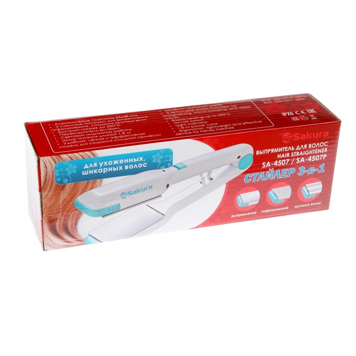 Мы предлагаем широкий ассортимент бытовой электроники. Выпрямитель SA-4507P, 3 в 1, 30 Вт, 1 режим, 2 пары насадок, бело-розовый — это полезный и актуальный прибор, который прослужит долго и сделает вашу жизнь проще.