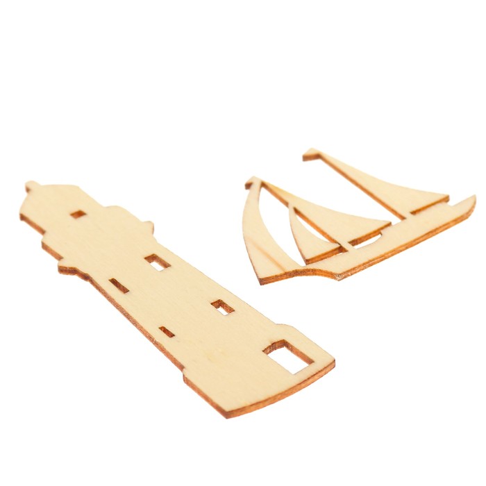 Вырубка для скрапбукинга из дерева "Ассорти-1"набор 2 дет. (маяк 7см, парусник 4х3,5см)