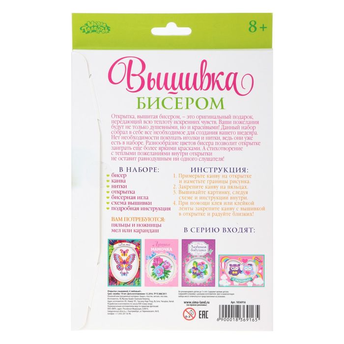 Вышивка бисером в открытке "С любовью!" отлично подойдёт для гармоничного развития творческих способностей и организации увлекательного совместного досуга. Создавайте, экспериментируйте и украшайте дом оригинальными вещами, сделанными своими руками!