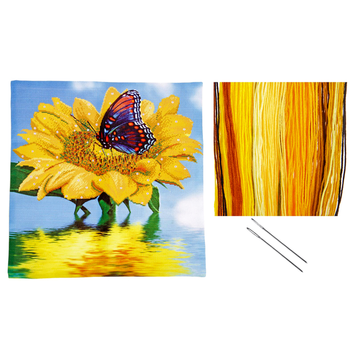 Вышивка крестиком - наволочка 45*45 см "Бабочка на подсолнухе" с иглами