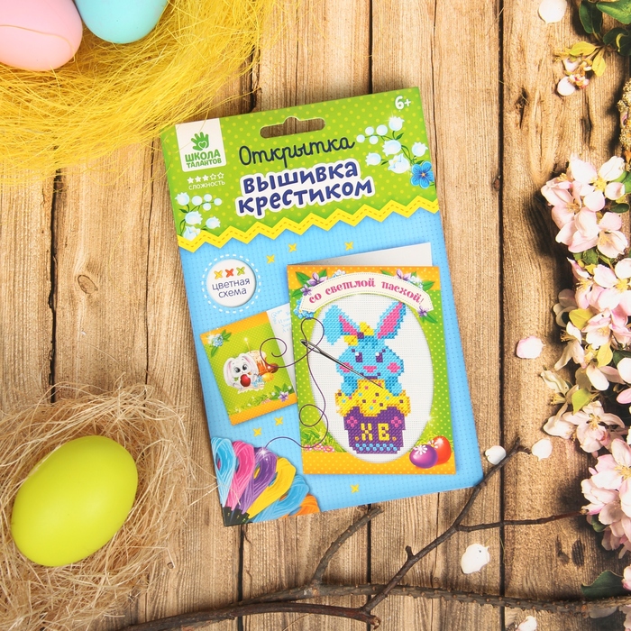 Вышивка крестиком в открытке "Со Светлой Пасхой", зайчик отлично подойдёт для гармоничного развития творческих способностей и организации увлекательного совместного досуга. Создавайте, экспериментируйте и украшайте дом оригинальными вещами, сделанными своими руками!
