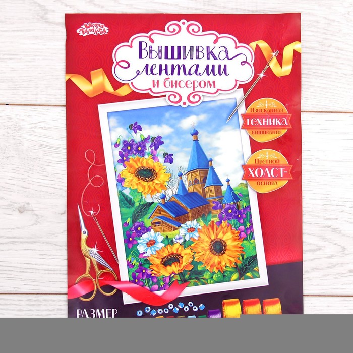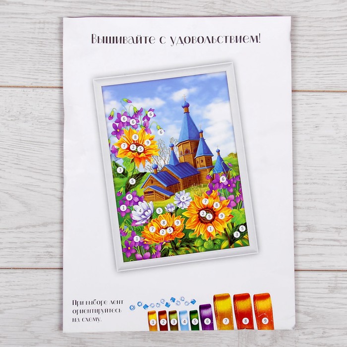 Вышивка лентами "Церковь", 25 х 35 см