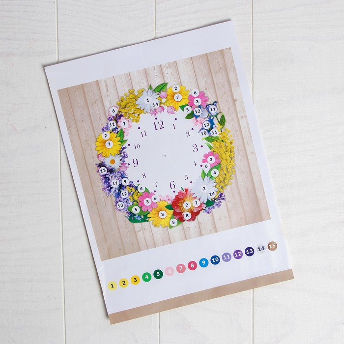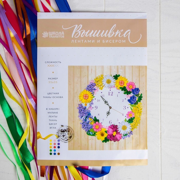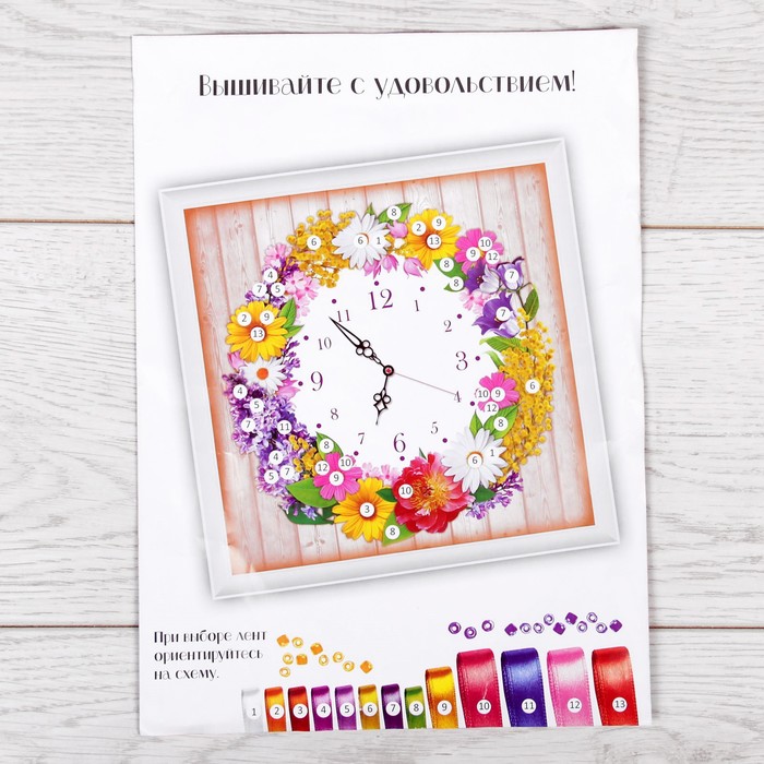 Вышивка лентами "Часы из цветов", 35 х 35 см