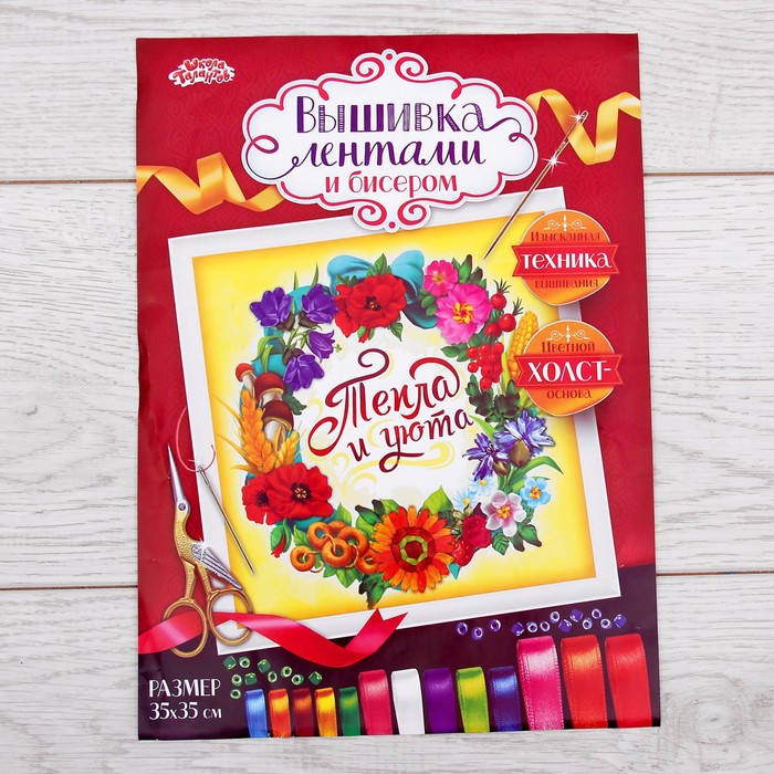Вышивка лентами "Тепла и уюта", 35 х 35 см