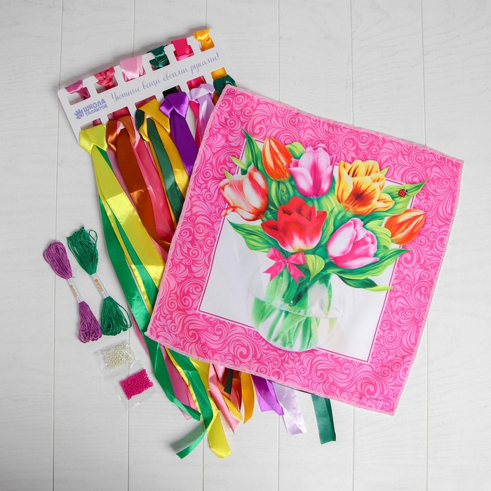 Вышивка лентами "Тюльпаны", 35 х 35 см