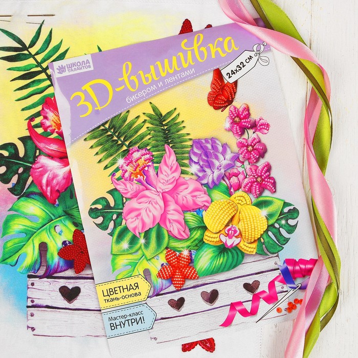Вышивка объёмная бисером и лентами "Тропическая композиция", 24 х 32 см отлично подойдёт для гармоничного развития творческих способностей и организации увлекательного совместного досуга. Создавайте, экспериментируйте и украшайте дом оригинальными вещами, сделанными своими руками!