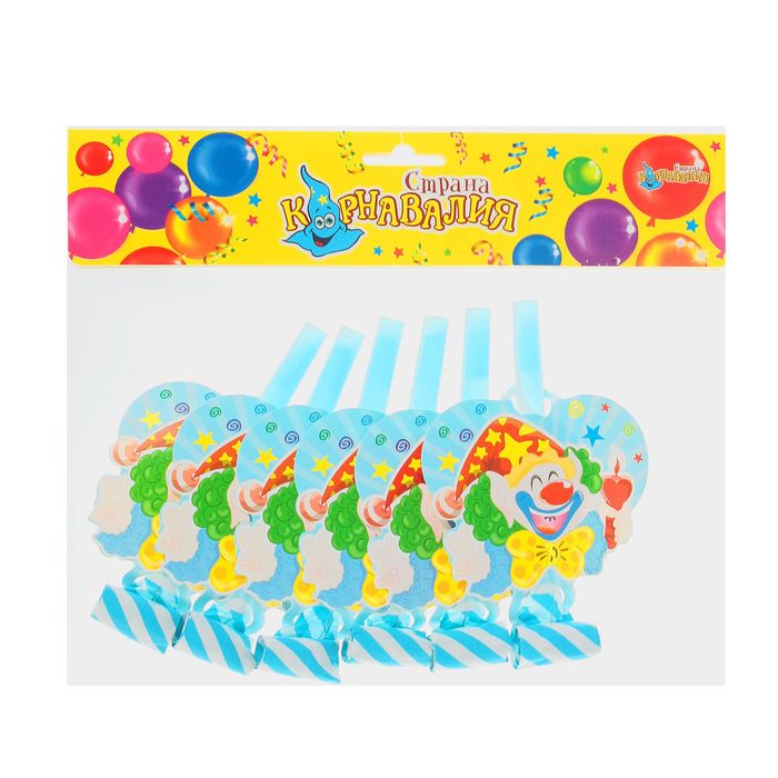 Язычок "Клоун со свечей" голубой цвет (набор 6 шт)