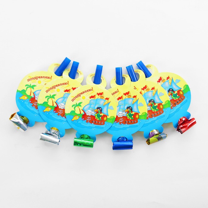 Язычок-кругляш "Поздравляю", пират, набор 6 шт., бумага, d=7 см