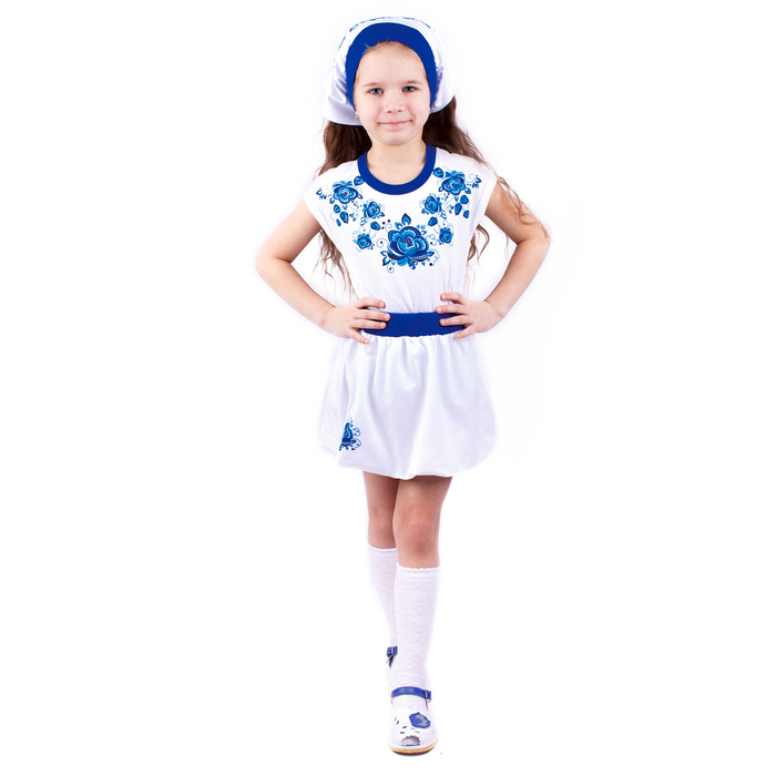 Юбка для девочки, печать справа "Гжель", рост 128 см (64), цвет белвый