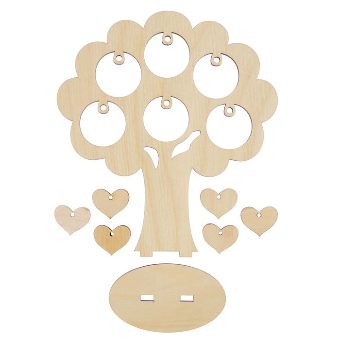 Заготовка для декора "Дерево с сердечками" на подставке (набор 8 деталей) 25 см