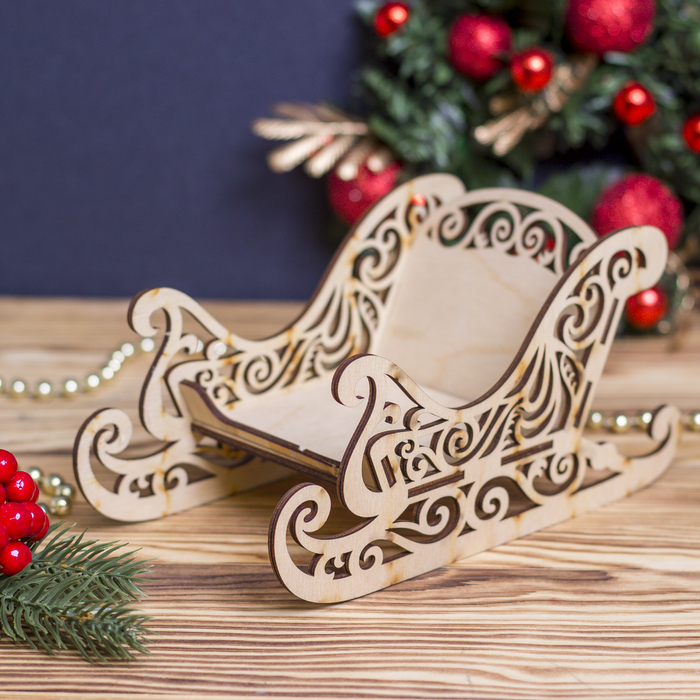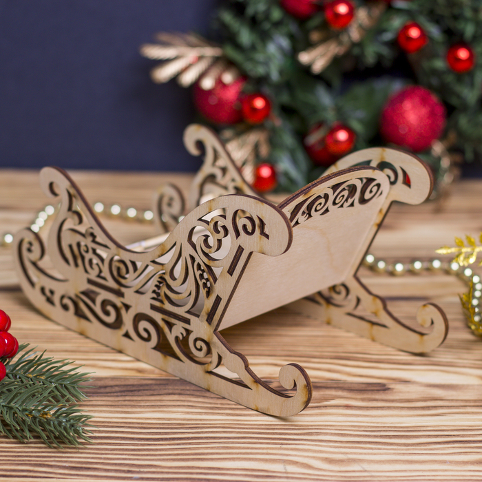 Заготовка для декора "Сани №2" из фанеры, набор 5 деталей 21х10х10 см