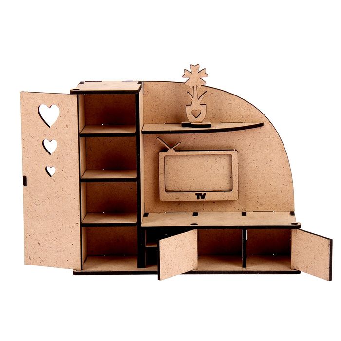 Заготовка для творчества "Стенка-горка для кукольного домика", набор 2 листа изготовлена из дерева — натурального материала, работать с которым удобно и приятно: хоть расписывать, хоть выжигать, хоть вырезать. Творите с удовольствием и соберите весь мебельный гарнитур для кукольного домика вашего ребёнка. Пусть ничто не ограничивает вашу фантазию!
