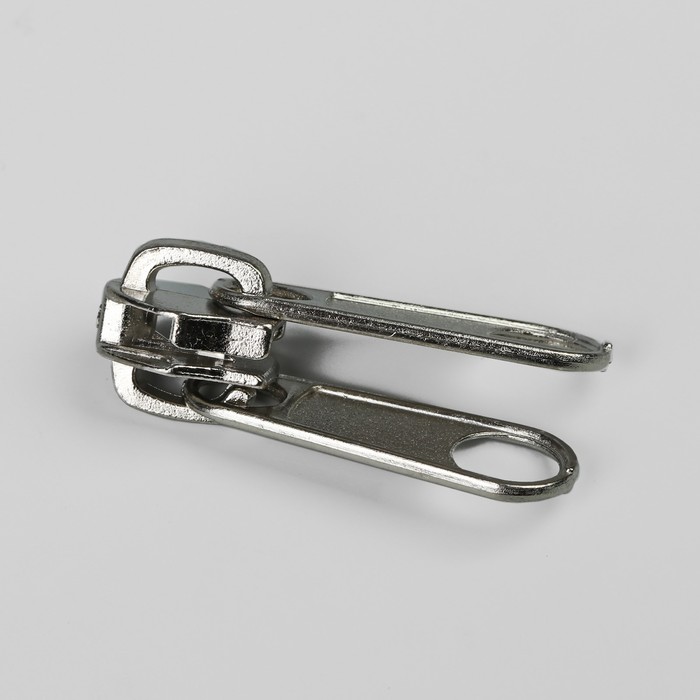 Замок галантерейный, два язычка, к молнии, спираль, №5, цвет никель