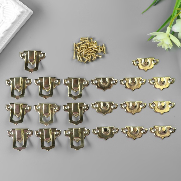 Замок металл для шкатулки золото + гвозд. набор 10 шт 2,9х3 см