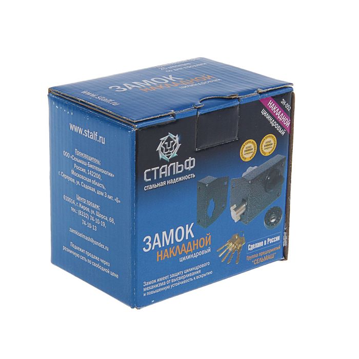 Накладной цилиндровый замок крепится к двери с помощью 8 саморезов. Механизм имеет защиту от высверливания.