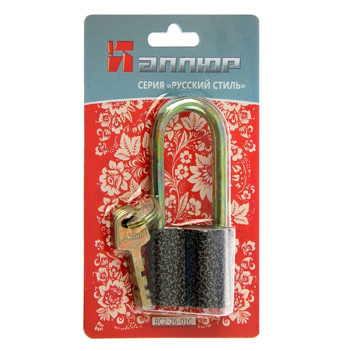 Замок навесной "АЛЛЮР" ВС2-26-01С, дужка d=8 мм, 3 ключа с двойной нарезкой, цвет антик