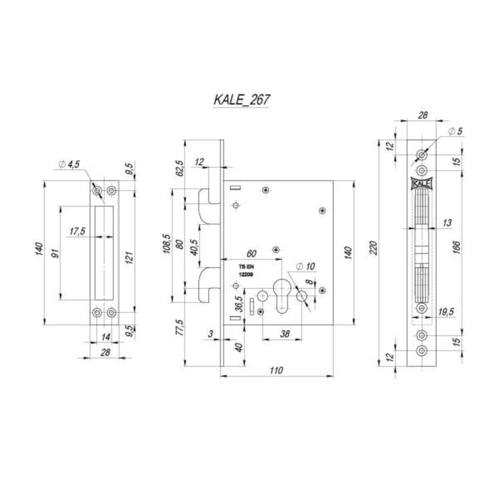 Замок врезной KALE 267 w/b, под ц/м, цвет хром