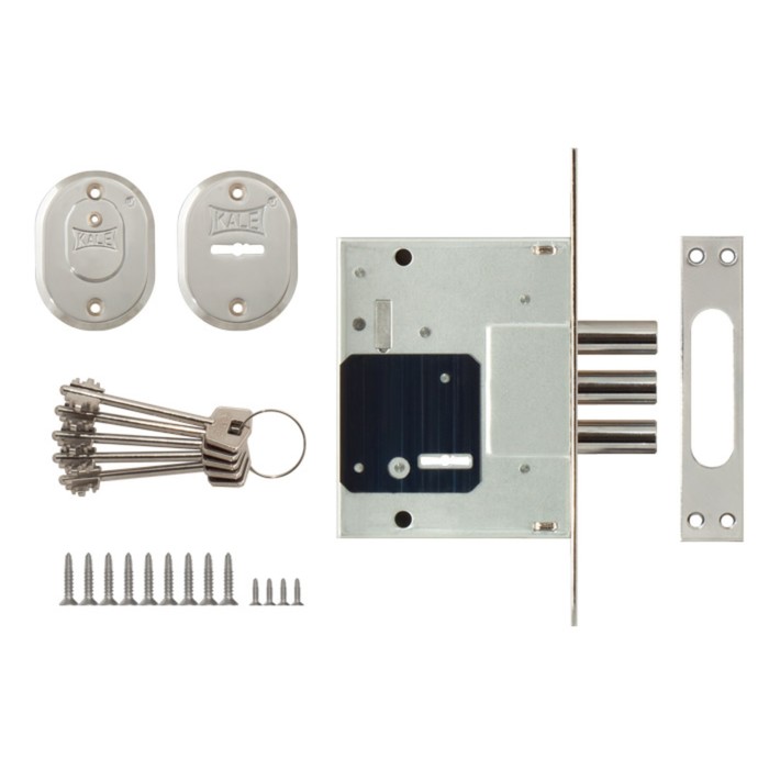 Замок врезной сувальдный KALE 257/L, 5 ключей, цвет хром