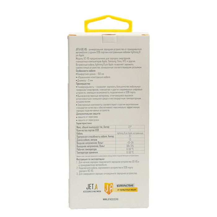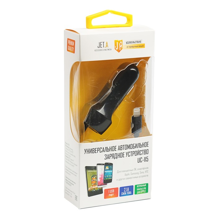 Зарядное устройство автомобильное Jet.A UC-I15, Apple 8pin, чёрное