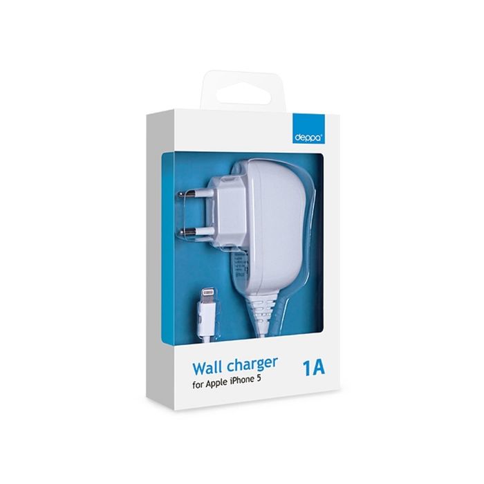 Зарядное устройство Deppa (23140) Apple 8-pin iPhone 5/6, 1000 mA, белый