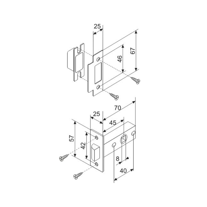 Защелка врезная Fuaro F12-45-25 SN, цвет матовый хром