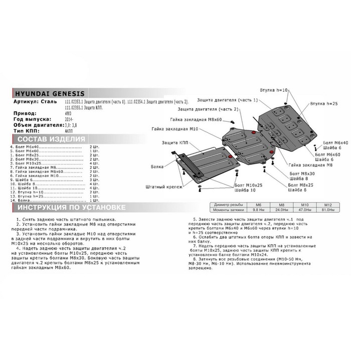Не секрет, что машина давно уже перестала восприниматься как просто средство передвижения, и водители покупают всё лучшее для своих железных коней. Защита картера АвтоБРОНЯ (часть 2) для Hyundai Genesis G90 (V - 3.3 / 4WD) 2016-н.в., крепеж в комплекте, сталь, 2 мм, 111.02354.1 — идеальный выбор, если вы ставите целью и улучшение технических характеристик, и поддержание внешнего вида автомобиля.