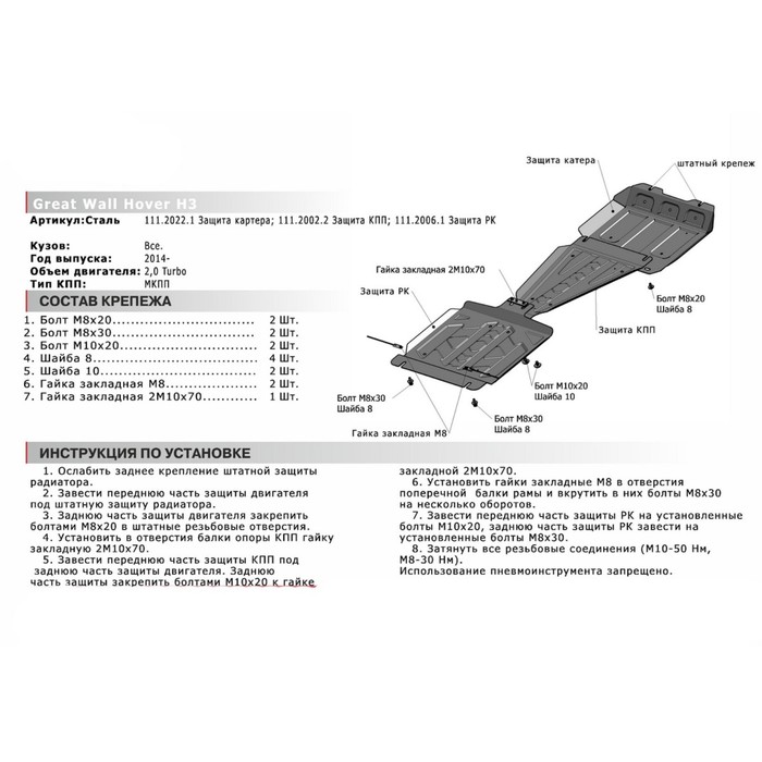 Не секрет, что машина давно уже перестала восприниматься как просто средство передвижения, и водители покупают всё лучшее для своих железных коней. Защита картера АвтоБРОНЯ для Great Wall Hover H3 (V - 2.0T) 2014-2015, крепеж в комплекте, сталь, 2 мм, 111.02022.1 — идеальный выбор, если вы ставите целью и улучшение технических характеристик, и поддержание внешнего вида автомобиля.