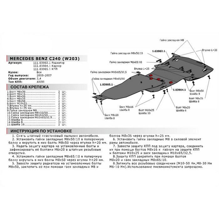 Не секрет, что машина давно уже перестала восприниматься как просто средство передвижения, и водители покупают всё лучшее для своих железных коней. Защита картера АвтоБРОНЯ для Mercedes-Benz С-class (V - 2.4 / АКПП) 2000-2007, крепеж в комплекте, сталь, 2 мм, 111.03904.1 — идеальный выбор, если вы ставите целью и улучшение технических характеристик, и поддержание внешнего вида автомобиля.