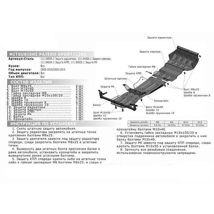Не секрет, что машина давно уже перестала восприниматься как просто средство передвижения, и водители покупают всё лучшее для своих железных коней. Защита картера АвтоБРОНЯ для Mitsubishi L200 2006-2015, крепеж в комплекте, сталь, 2 мм, 111.04006.1 — идеальный выбор, если вы ставите целью и улучшение технических характеристик, и поддержание внешнего вида автомобиля.