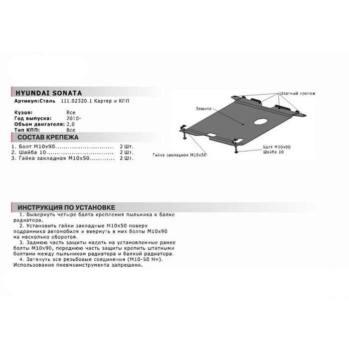 | Назначение защиты | Защита картера и КПП |