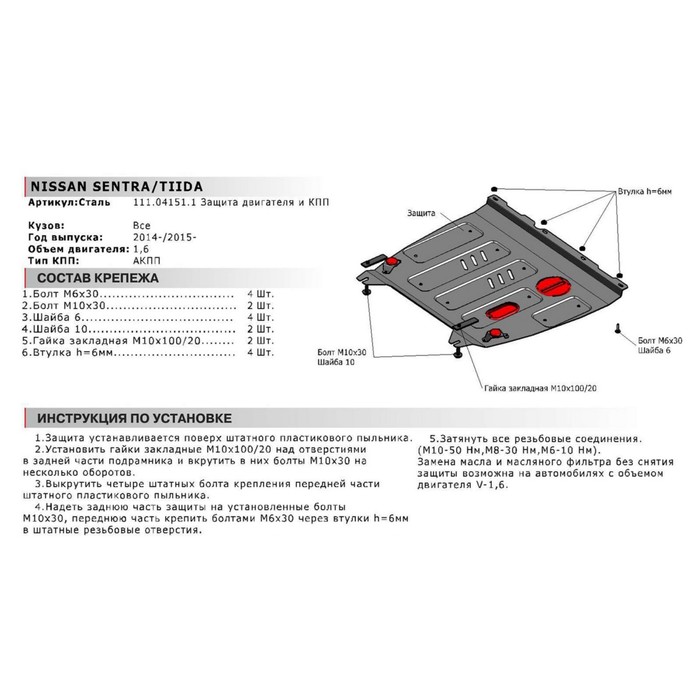 Не секрет, что машина давно уже перестала восприниматься как просто средство передвижения, и водители покупают всё лучшее для своих железных коней. Защита картера и КПП АвтоБРОНЯ для Nissan Sentra (V - 1.6 / АКПП) 2014-2017, крепеж в комплекте, сталь, 2 мм, 111.04151.1 — идеальный выбор, если вы ставите целью и улучшение технических характеристик, и поддержание внешнего вида автомобиля.